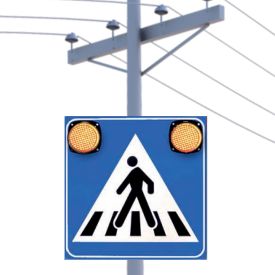 Indicator rutier Trecere de pietoni G1 echipat cu lampi cu LED-uri alimentate de la reteaua electrica, acumulator 9 Ah