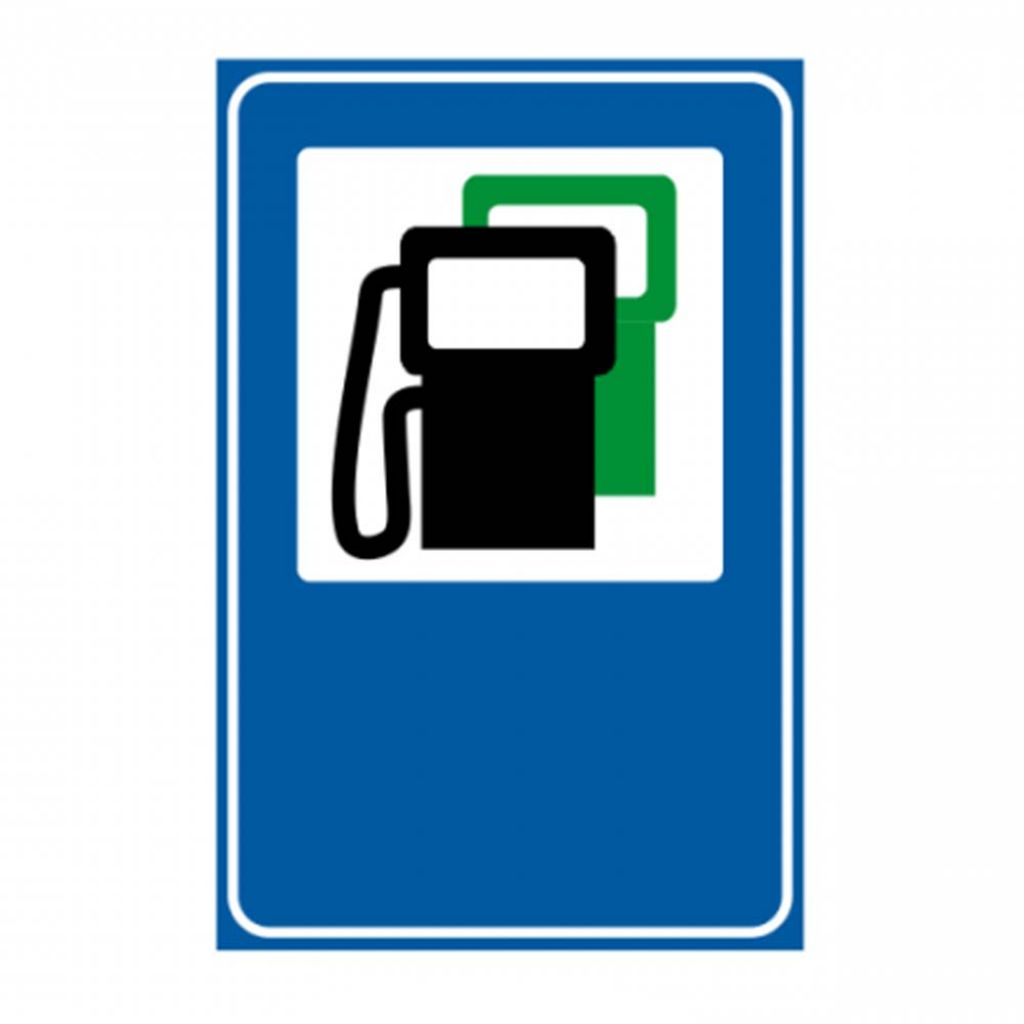 Indicator de informare G22 statie de alimentare cu carburanti, inclusiv benzina fara plumb 650x500 mm folie reflectorizanta clasa 1 otel vopsit aceste indicatoare rutiere se întâlnesc în apropierea unei stații de alimentare cu carburanți, inclusiv benzină fără plumb.
