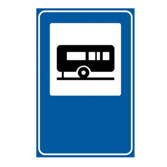 Indicator de informare G25 teren pentru caravane tabara turistica 650x500 mm folie reflectorizanta clasa 1 otel vopsit indicatorul rutier din imaginea alăturată, se întâlnește în apropierea unui teren special amenajat pentru staționarea autovehiculelor și rulotelor.