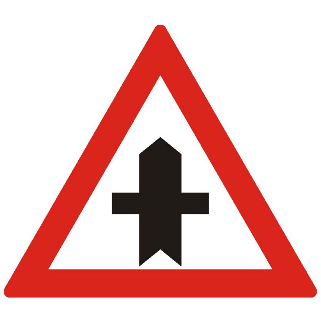 Acest indicator semnalează posibilitatea apariției vehiculelor din lateral și necesitatea sporirii atenției în zona intersecției, contribuind la prevenirea accidentelor rutiere.