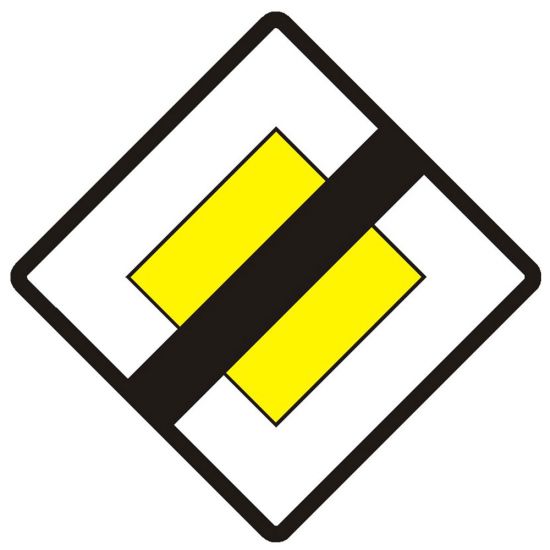 Acesta este amplasat la finalul drumului prioritar, informând participanții la trafic că, din acel punct, se aplică regulile generale de prioritate sau alte reglementări specifice intersecției următoare.