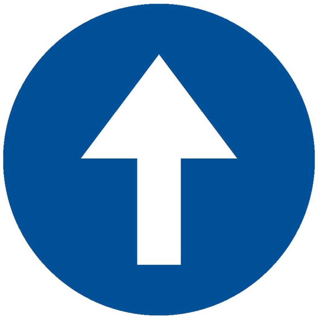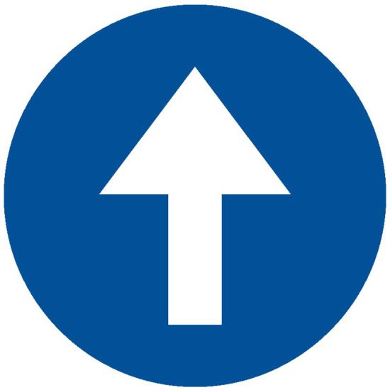 Inainte, D1, indicator de obligare, Protrafic, 600 mm, folie reflectorizanta clasa 1, otel vopsit, indicator de obligare se monteaza cu cel mult 50 m inainte de o intersectie, obligand conducatorul auto sa circule pe directia indicata de sageata. Daca actioneaza asupra unei singure benzi, atunci se va instala deasupra benzii respective. Acest indicator actioneaza doar in intersectia inaintea careia este instalat.