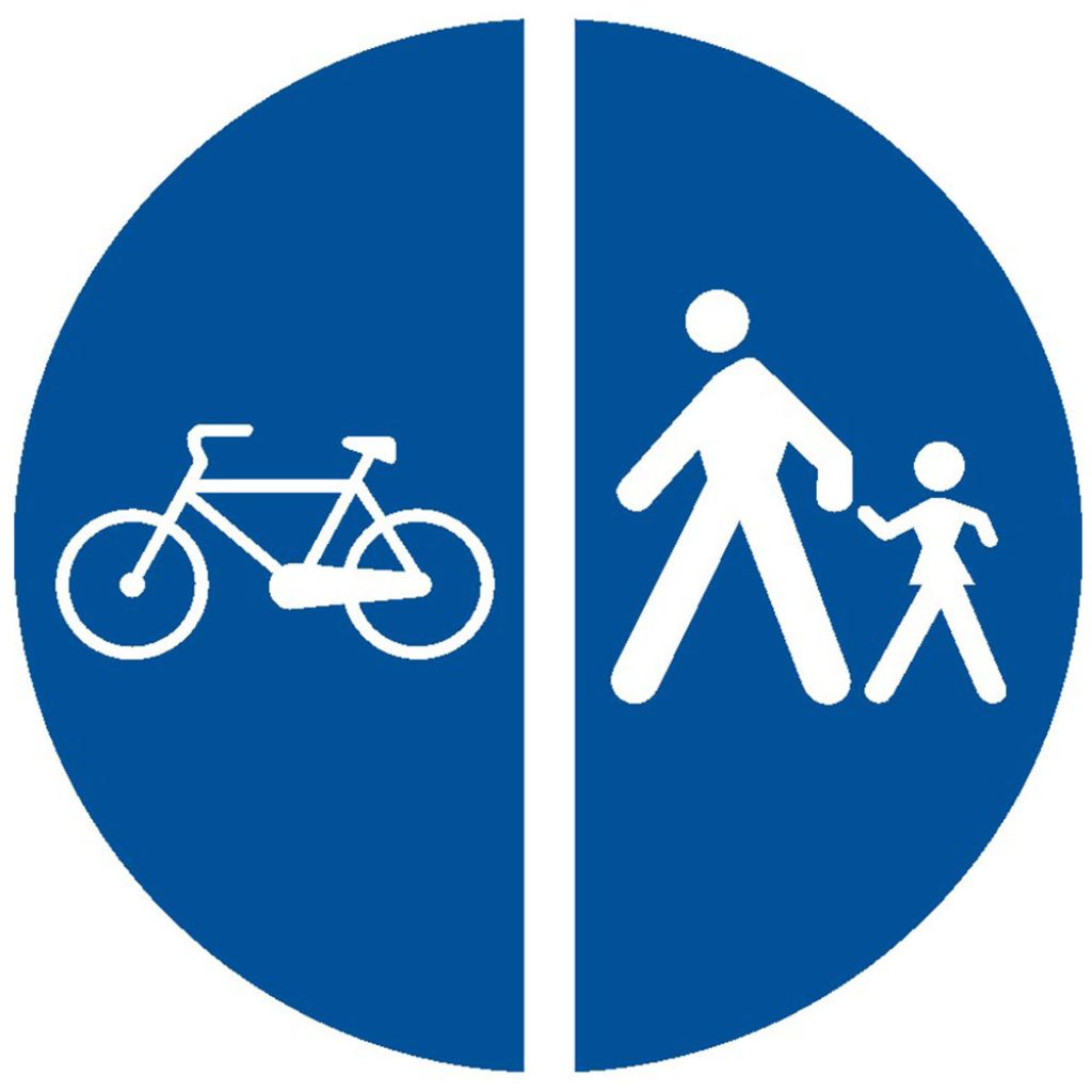circulatia pietonilor si a bicicletelor se va face conform delimitarii indicatorului (dreapta sau stanga)