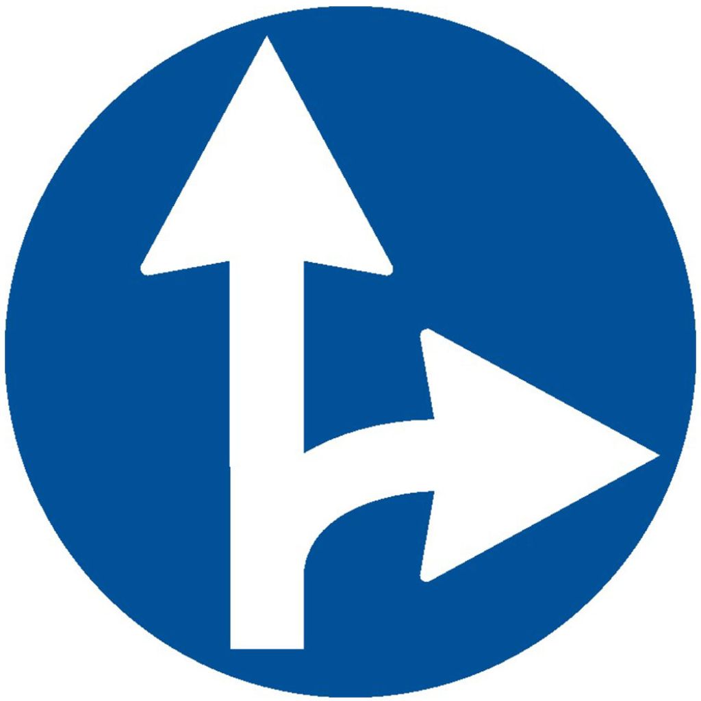 Inainte sau la dreapta, D4, indicator de obligare, Protrafic, 600 mm, folie reflectorizanta clasa 1, otel vopsit, indicator de obligare se amplaseaza inaintea intrarii intr-o intersectie, obligand conducatorul auto sa circule pe una din directiile indicate de sageti. Actioneaza doar in intersectia inaintea caruia este instalat.