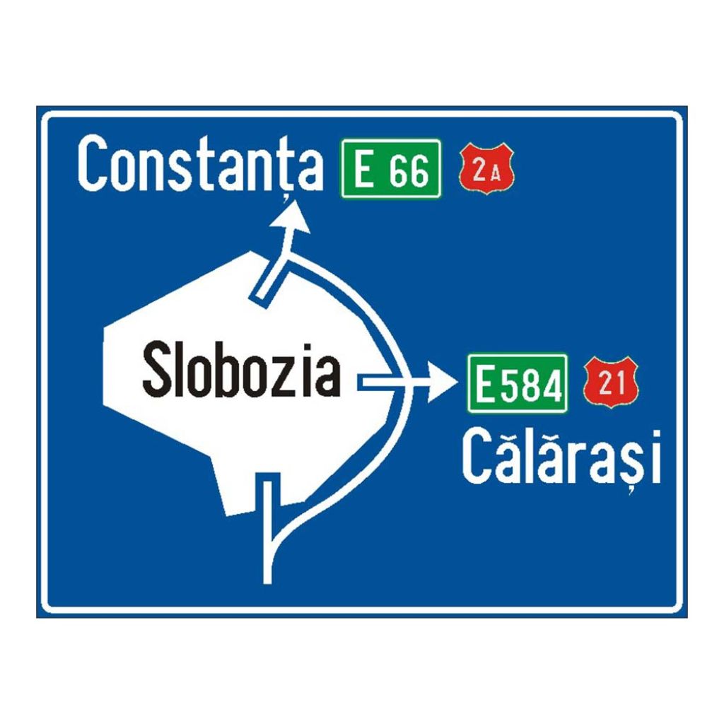 Indicator rutier F48 Confirmare direcție și distanțe localități – Indicator de orientare cu folie reflectorizantă Clasa 1 – SigTra