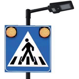 Indicator rutier Trecere de pietoni G1 cu lampi LED si alimentare de la iluminatul public, acumulator 8 Ah