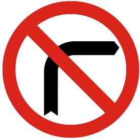 Interzis a vira la drepta, C23, indicator de interzicere, Protrafic, 600 mm, folie reflectorizanta clasa 1, otel vopsit, indicator de interzicere sau restrictie se afla instalat inaintea intersectiei in care se interzice virajul la dreapta, deoarece pe drumul respectiv circulatia se desfasoara intr-un singur sens sau intrucat executarea virajului ar pune in pericol ceilalti participanti la trafic. Zona de actiune a indicatorului se termina dupa prima intersectie.