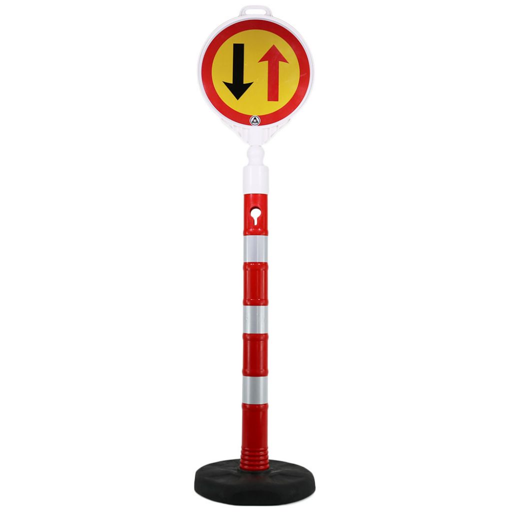 Set stalp 1200 mm cu baza grea si indicator pentru drum ingustat pe partea stanga