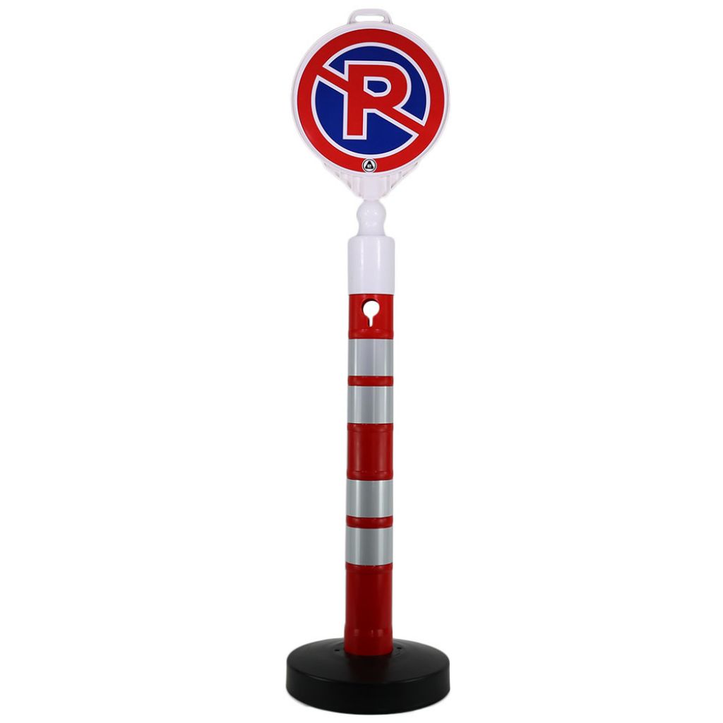 Kit format din un stalp cu inaltimea de 1200 mm, o baza cu greutatea de 12 kg si un indicator din plastic pentru interzicerea parcarii.