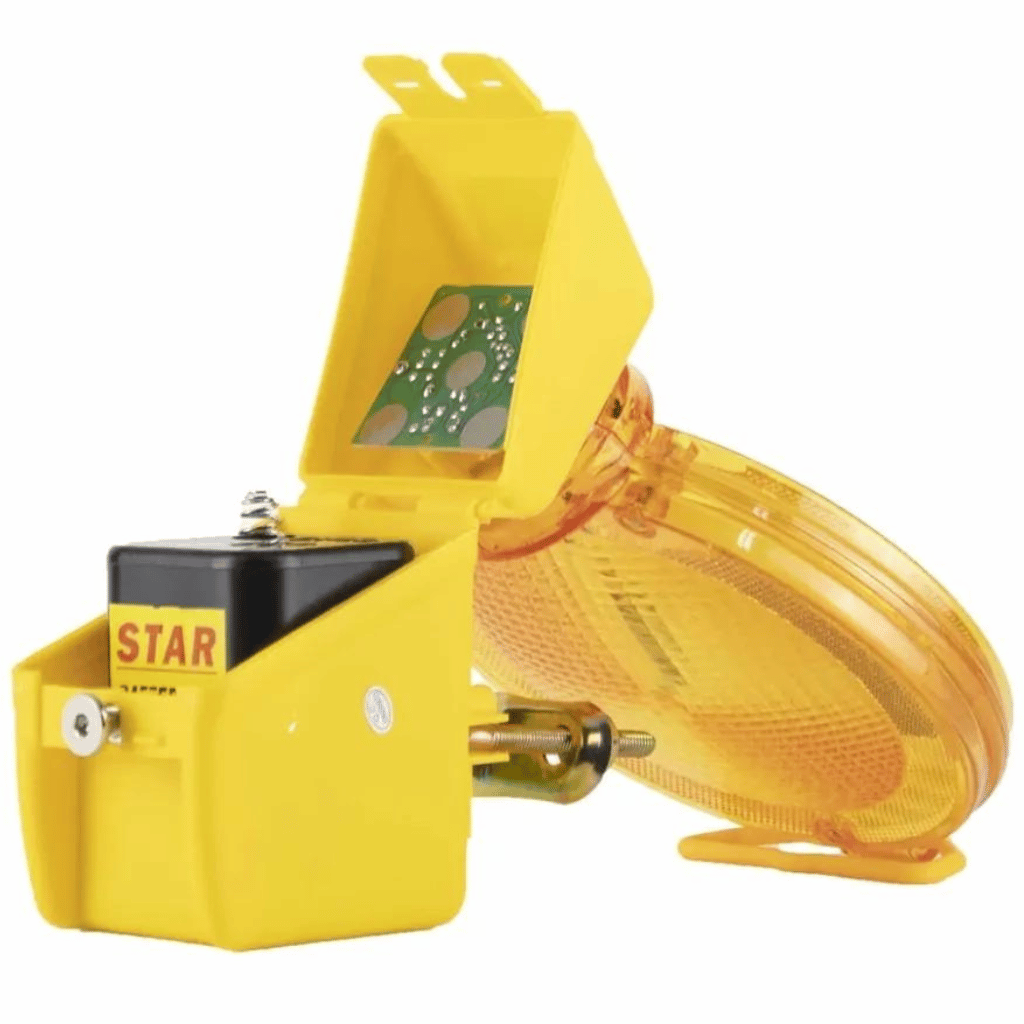 Lampa cu lumina intermitenta si baterie pentru semnalizare lucrari