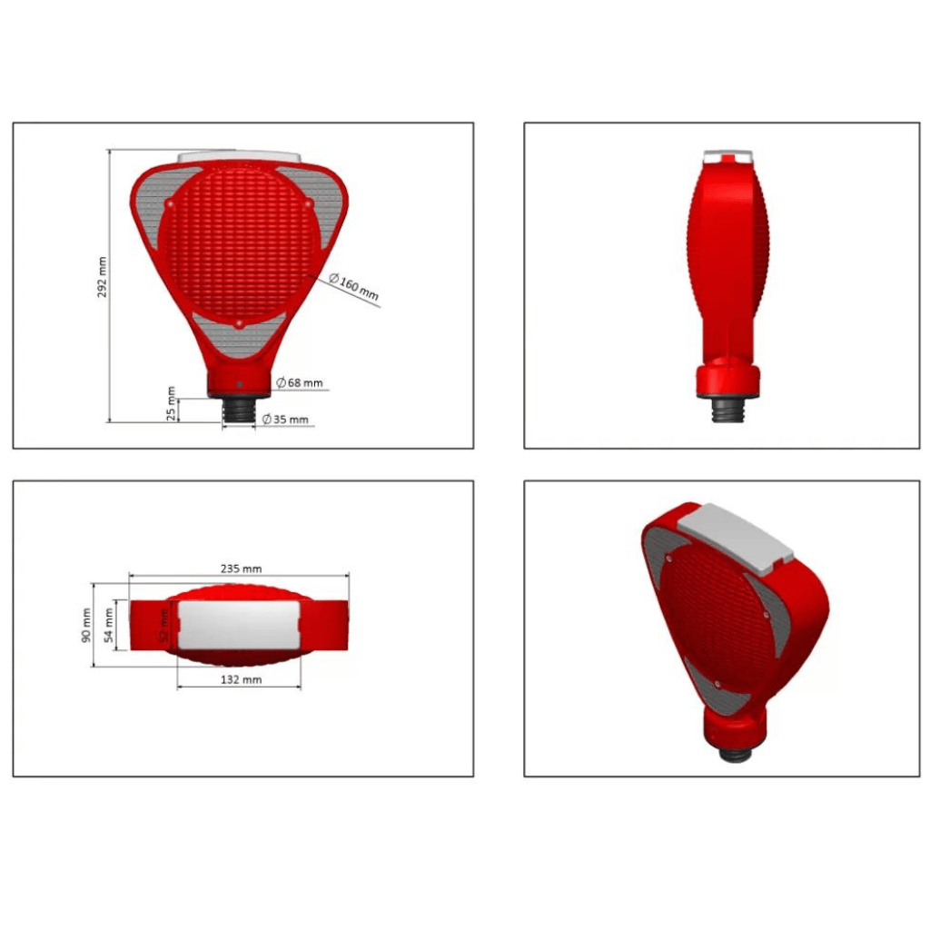 Pot fi atasate pe conuri de semnalizare sau stalpi.