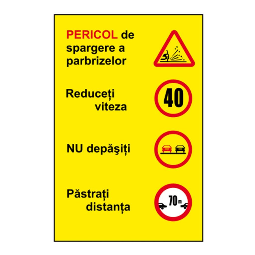 Indicatorul rutier, semnalizează un sector de drum pe care se execută lucrări de tratamente ale suprafeței părții carosabile. Conducătorii auto trebuie să respecte semnificația indicatoarelor afișate pe panou.