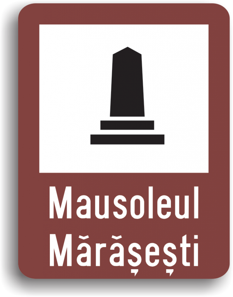 Acest indicator rutier de informare turistică, se întâlnește pe sectoarele de drum din apropierea unor monumente.