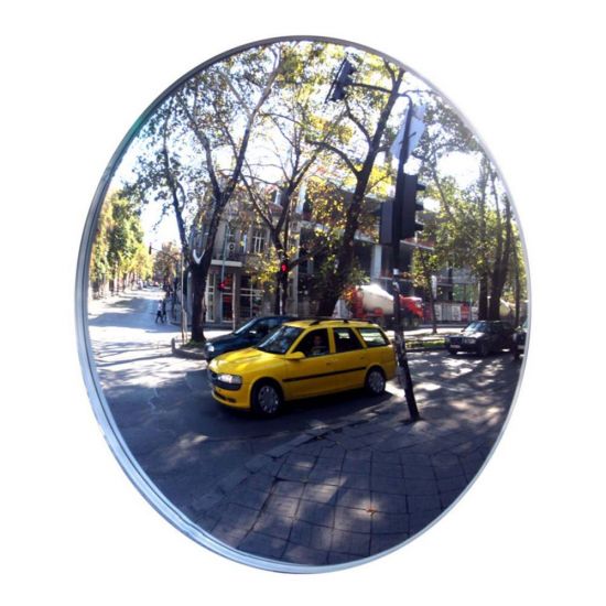 Oglinda stradala rotunda cu diametru 900 mm, varianta economica, fara bordura, de exterior se foloseste cu mare succes pentru sporirea vizibilitatii. In plus aceasta se foloseste si pentru a imbunatati siguranta rutiera.