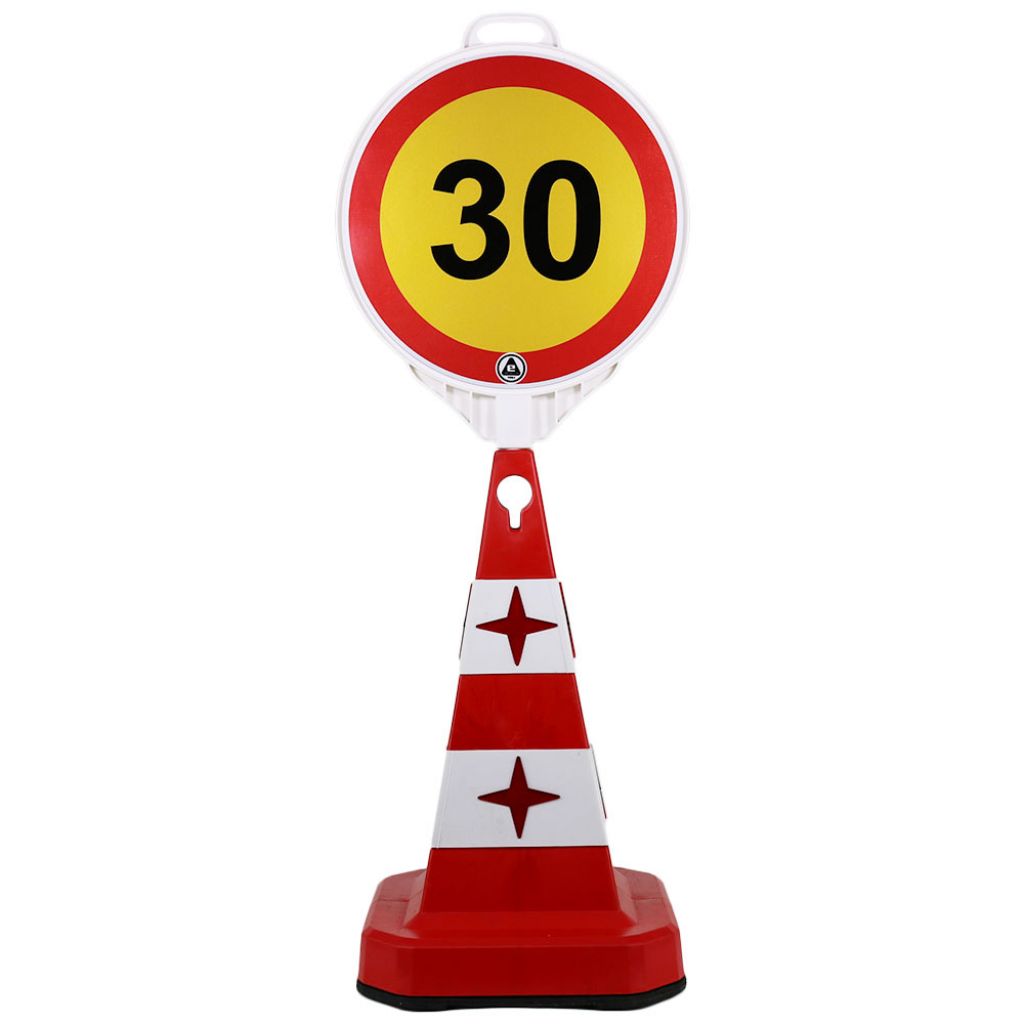 Pachet format din un con rutier cu inaltime de 600 mm si un indicator din plastic pentru limitarea vitezei la 30 km/h.