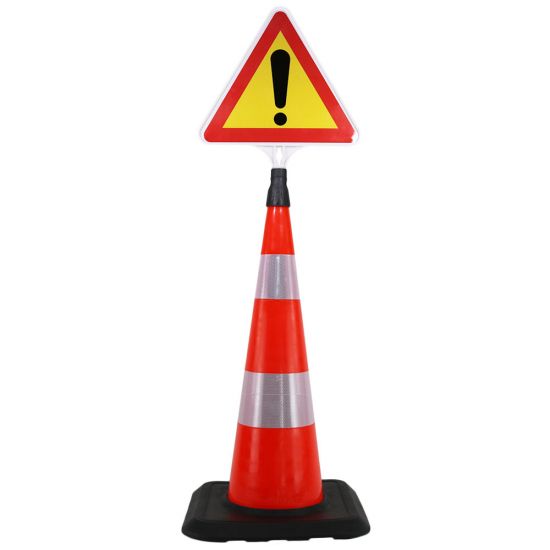 Pachet format din un con rutier cu inaltime de 900 mm si un indicator din plastic pentru atentie.
