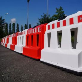 Parapet lestabil plastic dur rosu pentru delimitarea lucrarilor sau ghidarea traficului auto. Acest parapet nu se umple cu apa sau nisip si este o solutie usor de utilizat, transportat si depozitat.