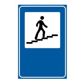 Indicatorul rutier din imaginea alăturată, se întâlnește în apropierea pasarelelor pentru pietoni. Pentru traversarea drumurilor din zona respectivă, pietonii sunt obligați să se deplaseze folosind pasarela.