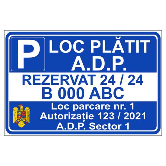 Placuta indicatoare parcare, autorizatie numar, numar loc, numar auto, 200x300 mm, PVC, 1 mm