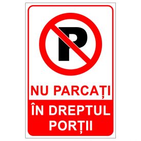 Placuta indicatoare parcare, nu parcati in dreptul portii, 200x300 mm, PVC, 1 mm
