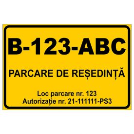 Placuta indicatoare parcare, autorizatie numar, numar loc, numar auto, 200x300 mm, PVC, 1 mm