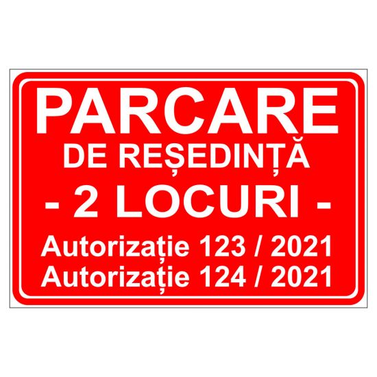 Placuta indicatoare parcare, autorizatie numar, numar loc, numar auto, 200x300 mm, PVC, 1 mm