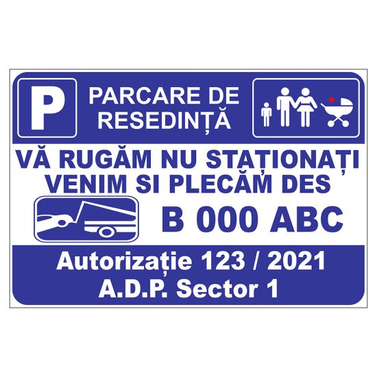 Placuta indicatoare parcare, autorizatia nr., primaria, numar auto, 200x300 mm, PVC, 1 mm