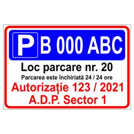 Placuta indicatoare parcare, autorizatie numar, numar loc, numar auto, 200x300 mm, PVC, 1 mm