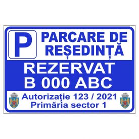 Placuta indicatoare parcare, autorizatia nr., primaria, numar auto, 200x300 mm, PVC, 1 mm