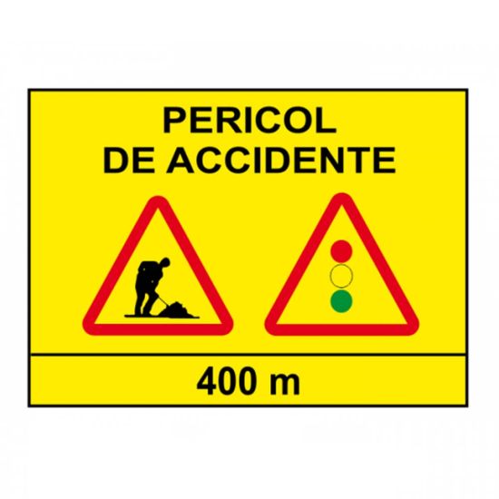 Presemnalizează un sector cu circulație alternantă, aflat la 400 metri de locul unde este amplasat indicatorul rutier. Deasemenea, indicatorul avertizează că urmează o intersecție semaforizată; pe partea carosabilă pot apărea persoane care lucrează la sectorul de drum respectiv și drumul prezintă pericol de accidente.