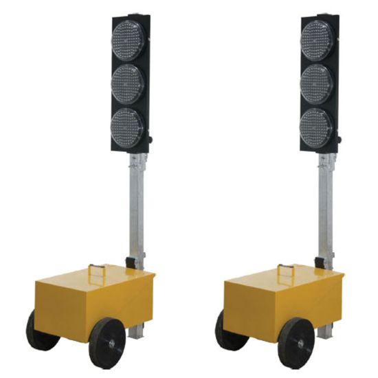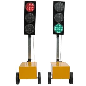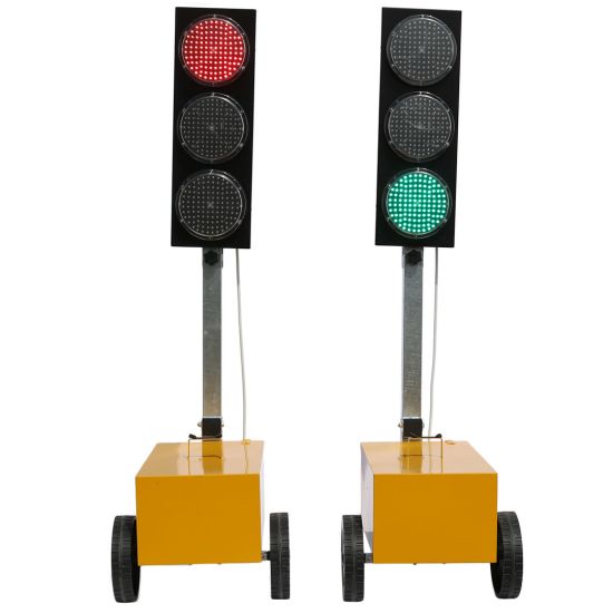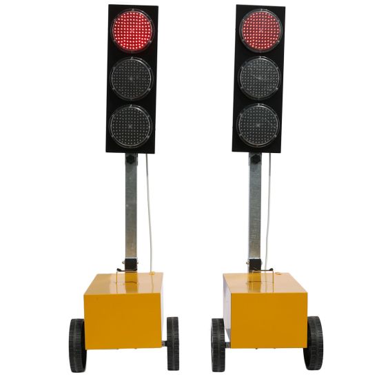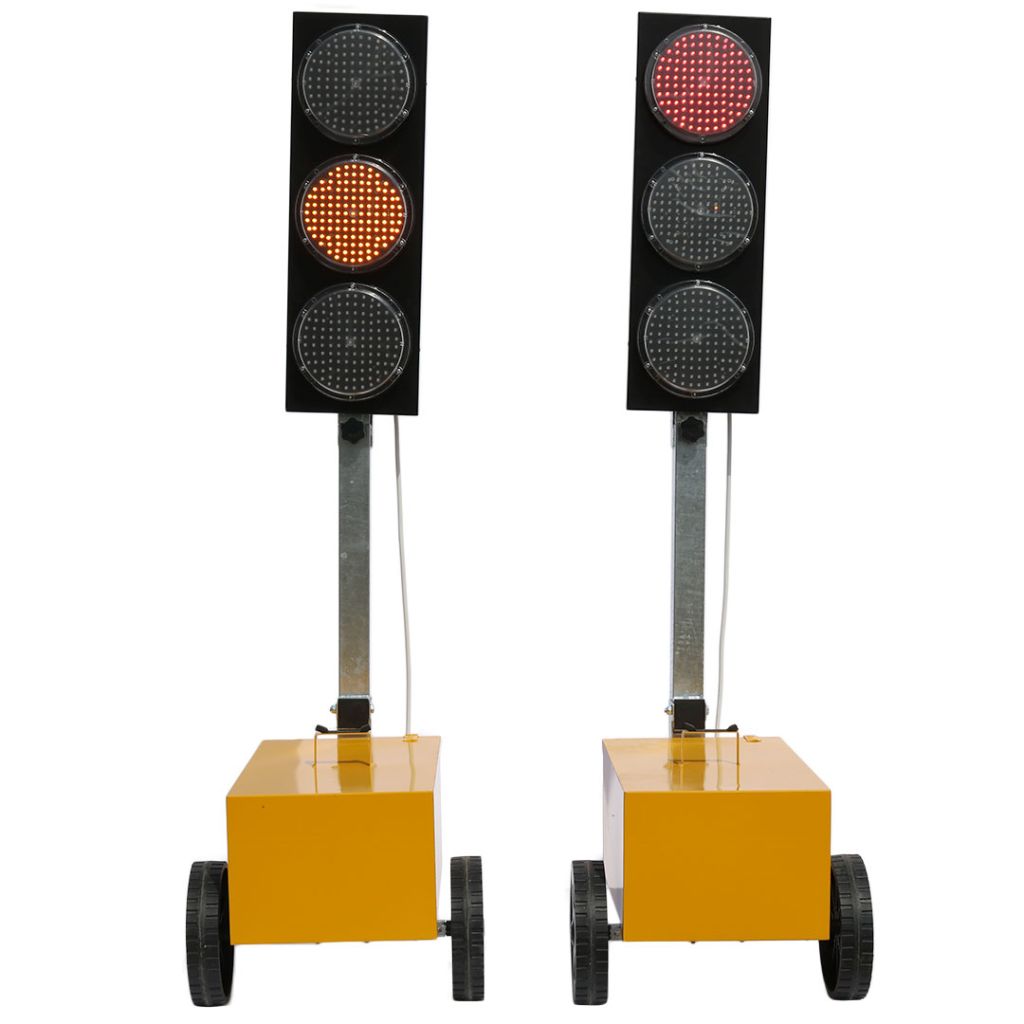 Set de 2 semafoare mobile pentru zone cu lucrări, cu lumini roșu-galben-verde