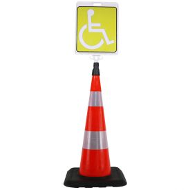 Set format din un con rutier cu inaltime de 900 mm si un indicator din plastic pentru locuri de parcare rezervate persoanelor cu handicap.