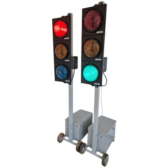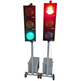 Set de 2 semafoare mobile pentru zone cu lucrări, cu lumini roșu-galben-verde