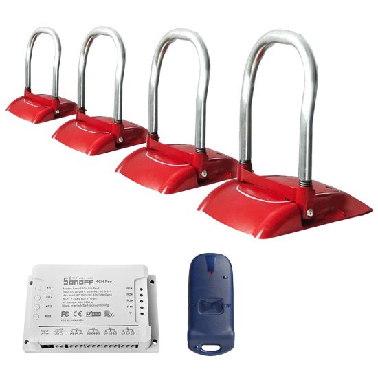 Set 4 blocatoare automate pentru parcare Ducati model MY PARK 2110 cu modul WI-FI este un sistem de blocare automat al locului de parcare cu telecomanda si modul wi-fi pentru control prin telefon.