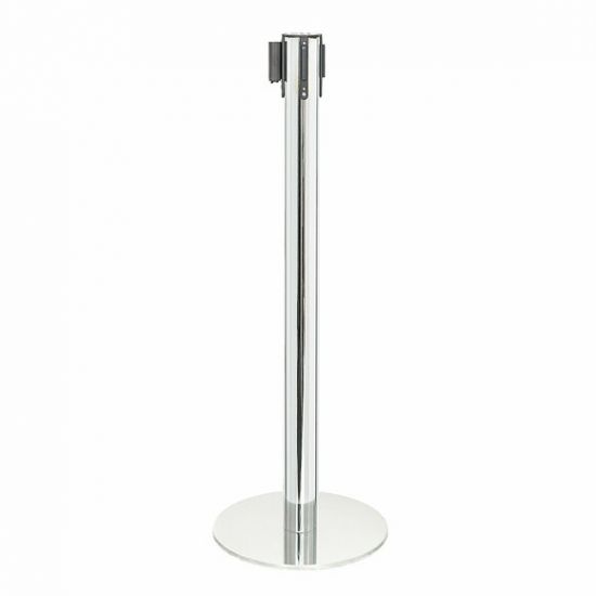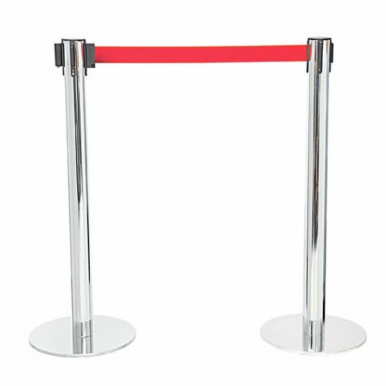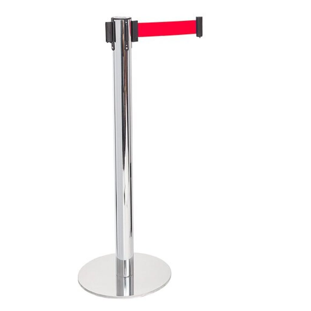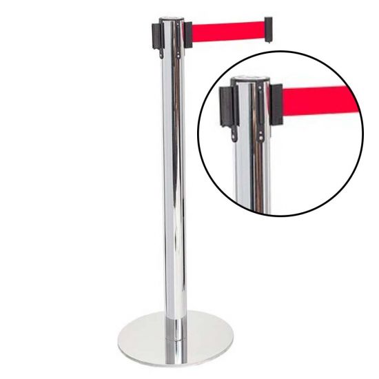 Stalp de ghidare si delimitare, cromat, cu banda retractabila, rosie, 3 metri