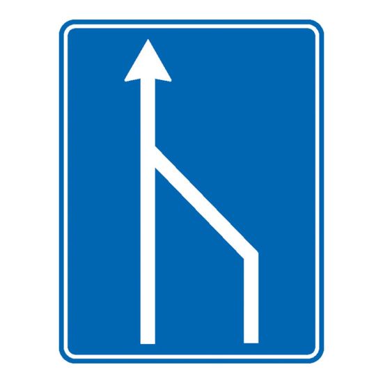 Terminarea benzii de circulatie din dreapta partii carosabile F23, indicator de orientare.